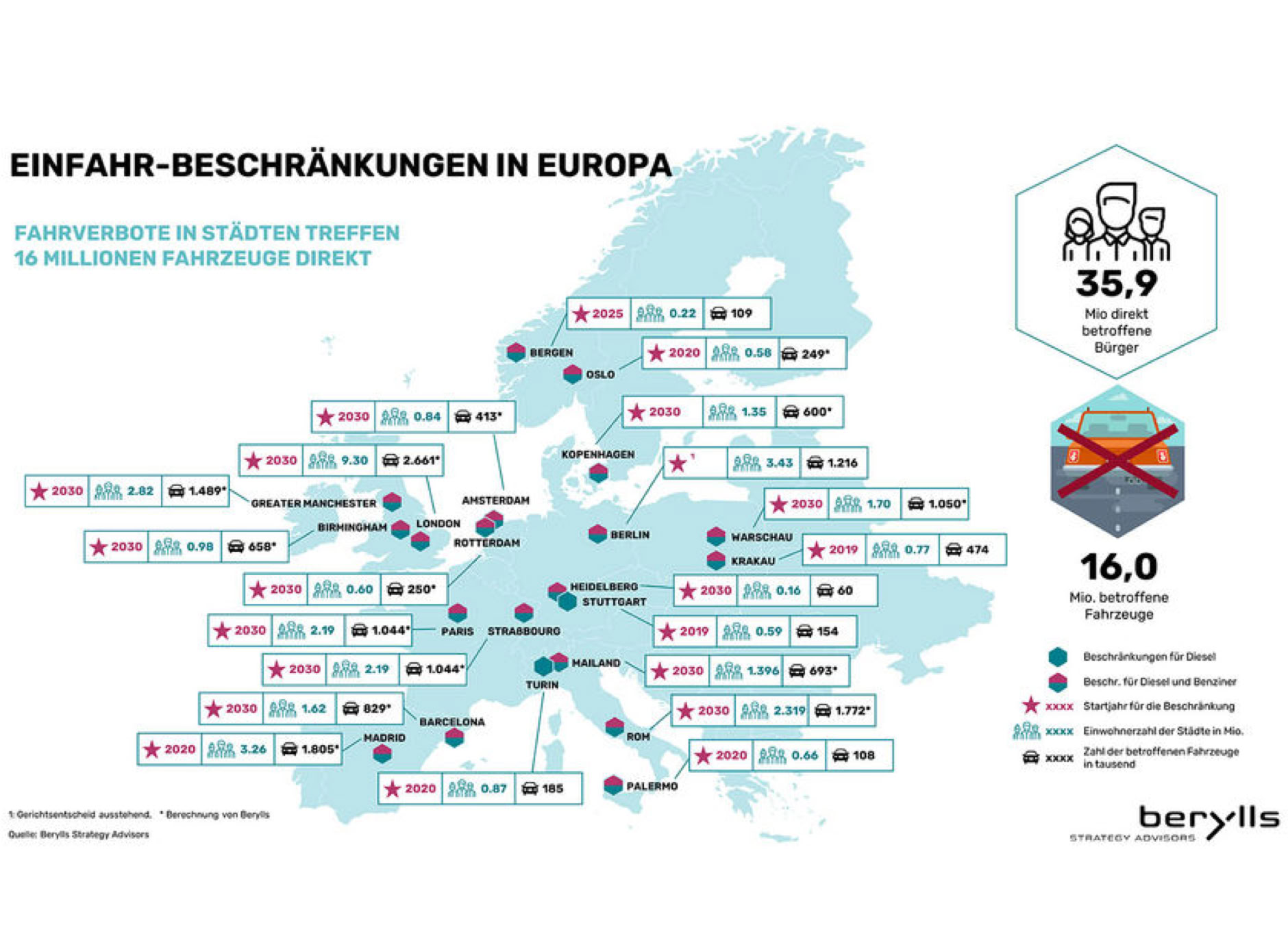 Die Einfahrtbeschränkungen für Verbrennerfahrzeuge nehmen stark zu. Eine europäische Übersicht: